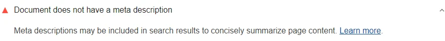 Lighthouse gắn cờ các trang không có nội dung mô tả meta: