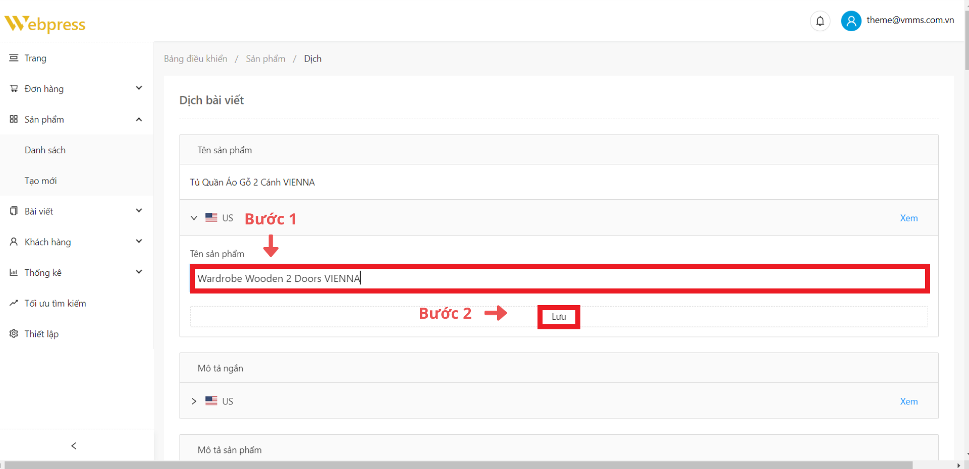 Bước 4: Làm tương tự với các khối còn lại trong trang “Dịch bài viết” (VD: Tên sản phẩm, Mô tả ngắn,…)