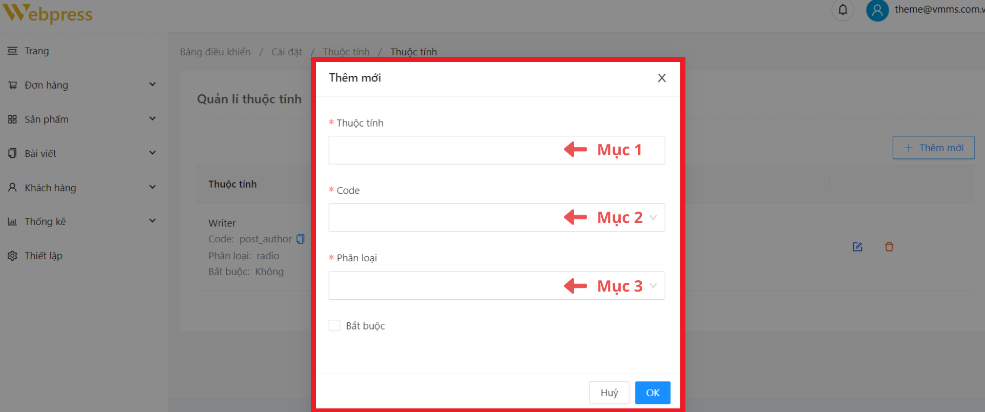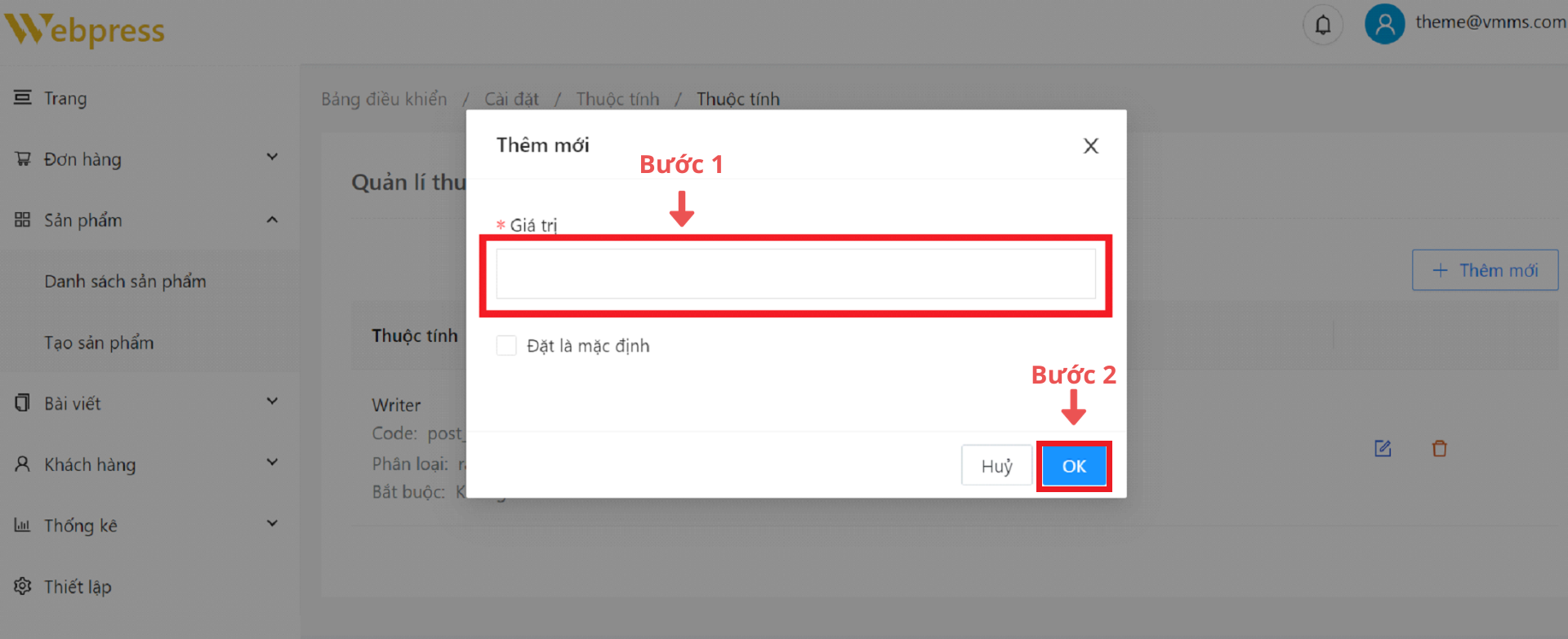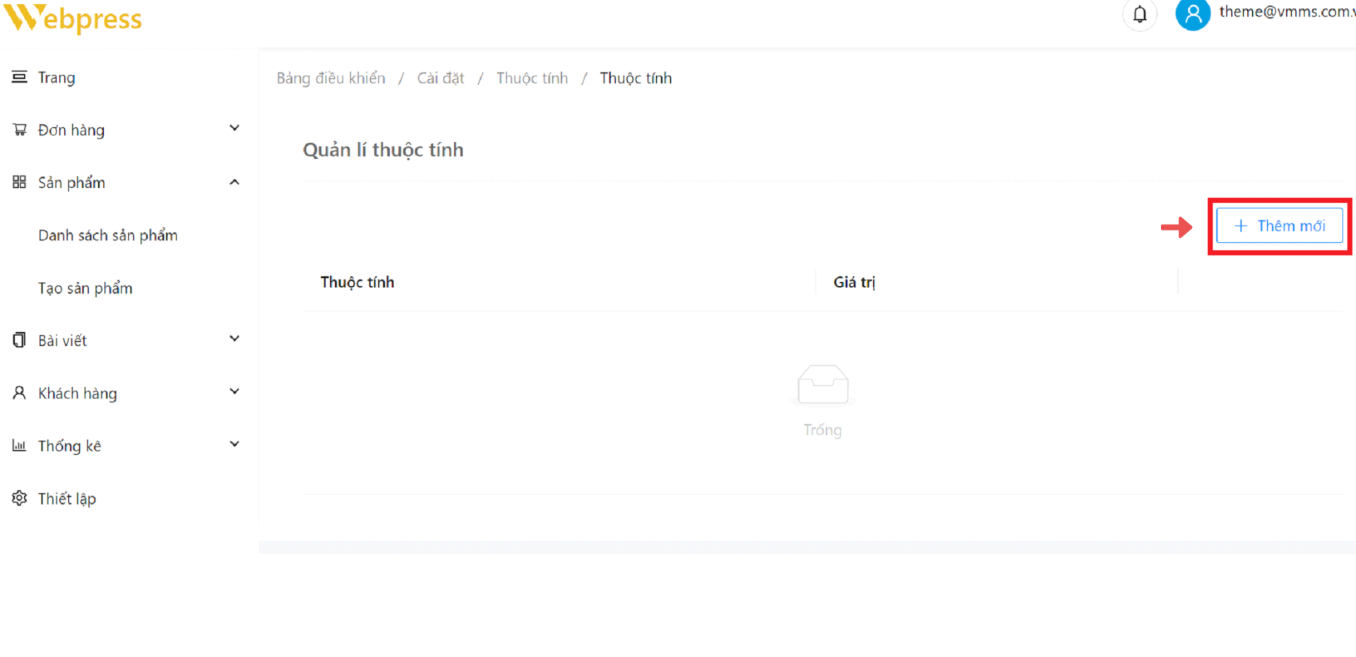 Bước 2: Tại trang “Thuộc tính" → chọn “Thêm mới”
