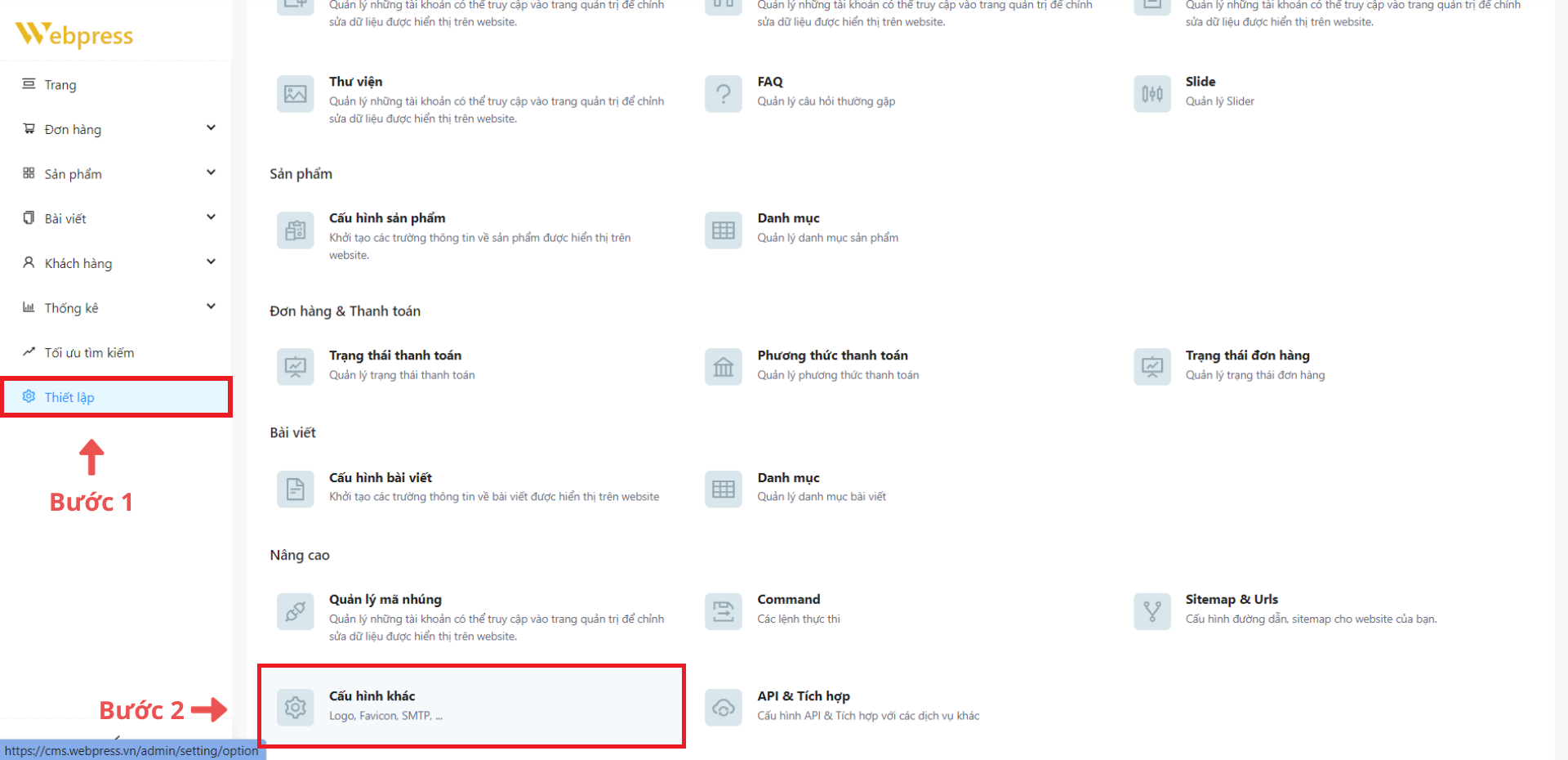 Bước 1: Ở danh mục “Thiết lập” → chọn “Cấu hình khác”