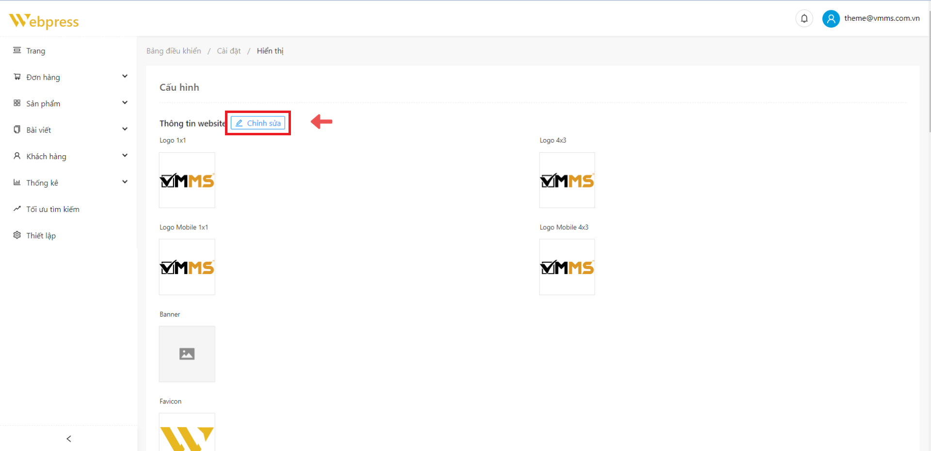 Bước 2: Tại trang “Cấu hình" → chọn “Chỉnh sửa”