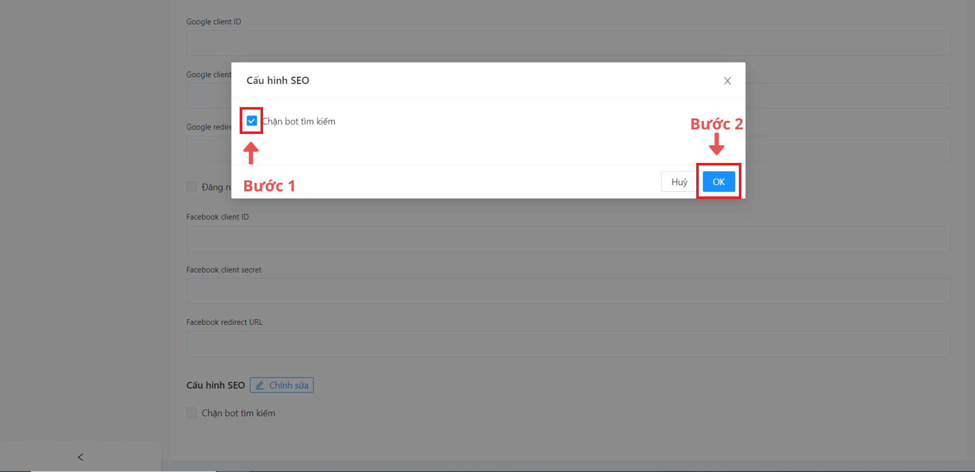 Bước 5: Sau khi chọn “Chỉnh sửa”, ô cửa sổ “Cấu hình SEO” sẽ hiện ra