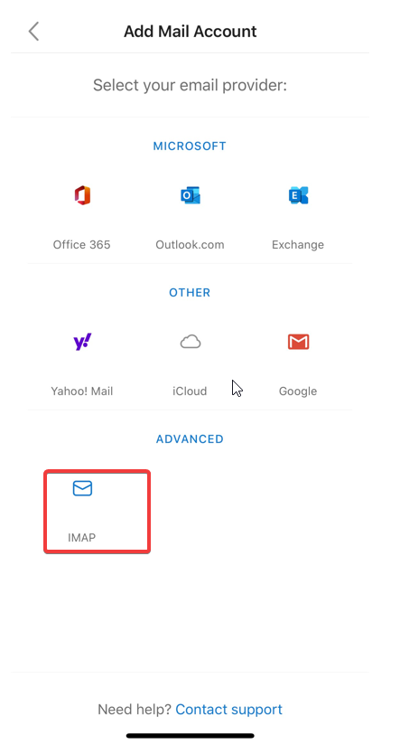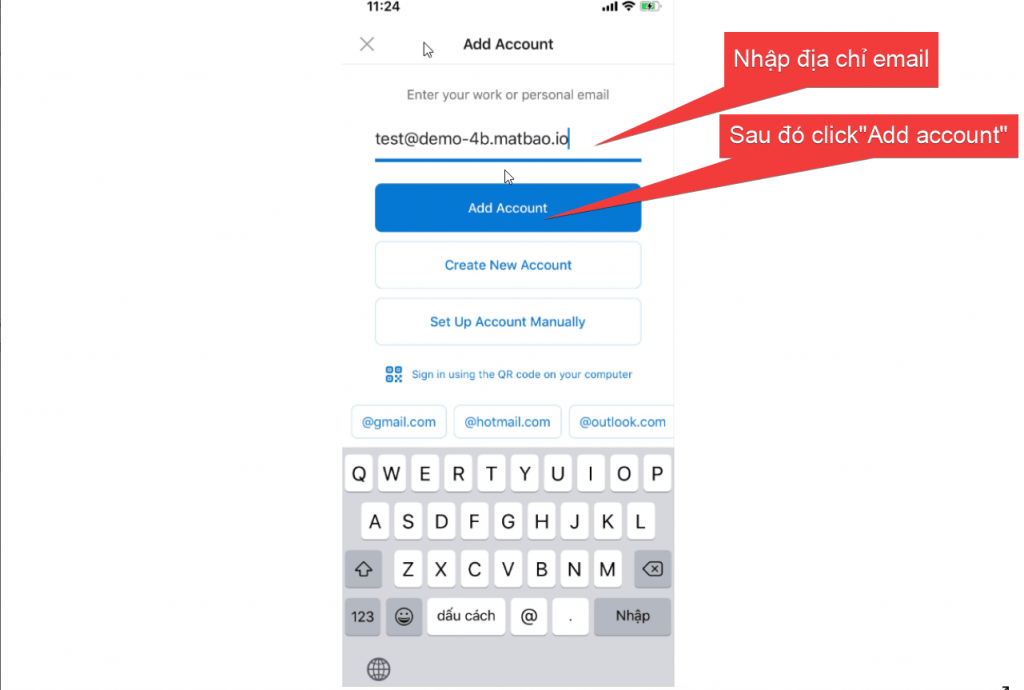 Bước 5: Giao diện cài đặt Email vào ứng dụng Outlook trên điện thoại di động