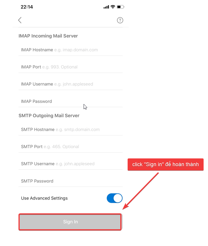 Sau khi thao tác tại bước 4 và điền đầy đủ thông tin, các bạn click “Sign in” như hình bên dưới