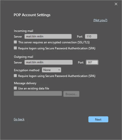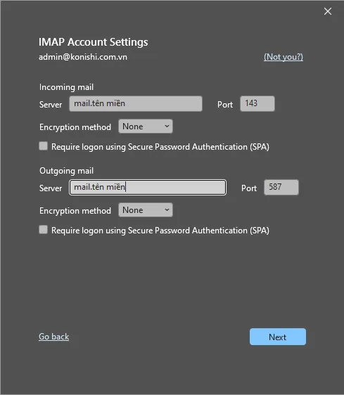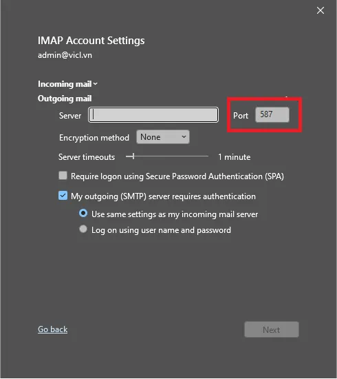 Tại đây bạn kiểm tra mục Port, nếu đang sử dụng port 25, hãy chuyển qua port 587. Sau đó ấn Next và Done
