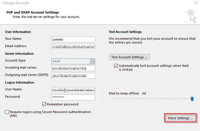 Bước 3: Tại cửa sổ Change Account, bạn chọn More Settings