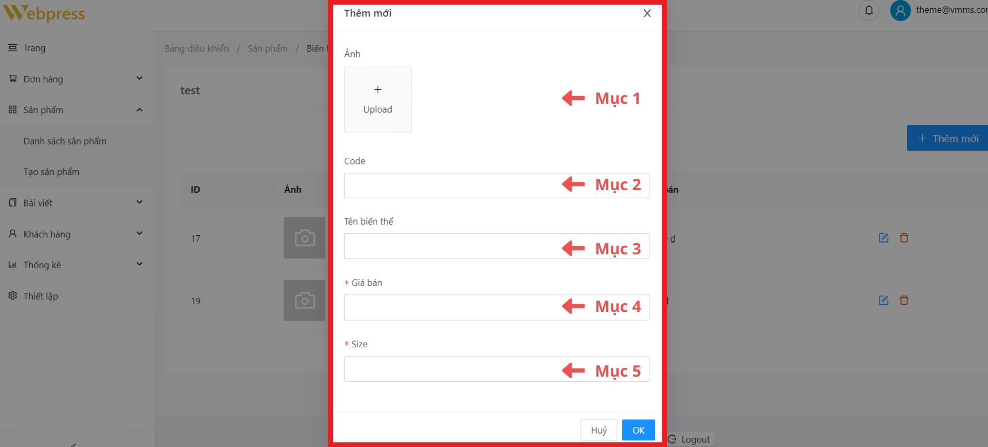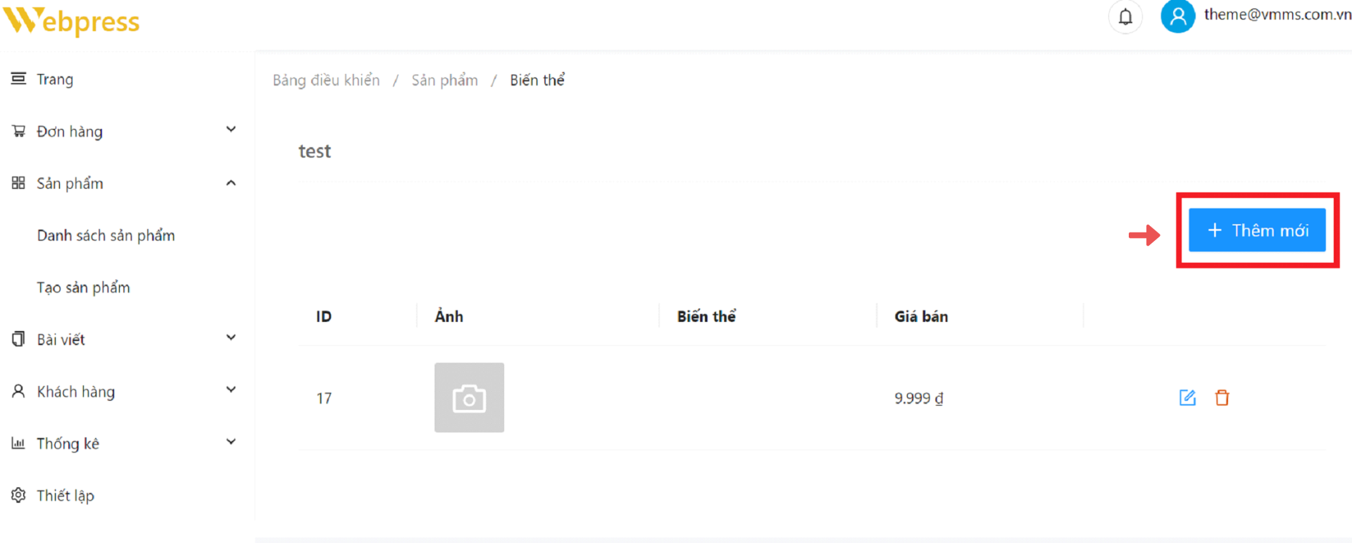 Bước 2: Ở trang “Biến thể” ➞ chọn “Thêm mới”