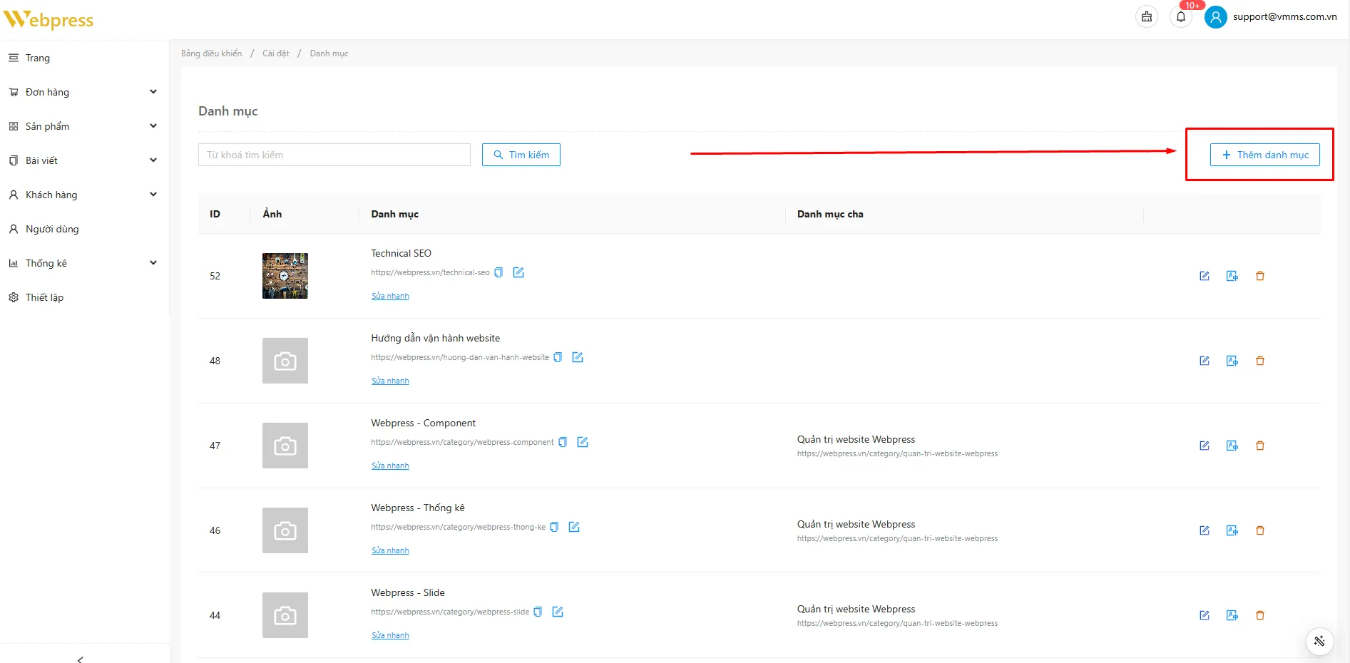 Bước 2: Tại trang Danh mục, bấm nút “Thêm danh mục”