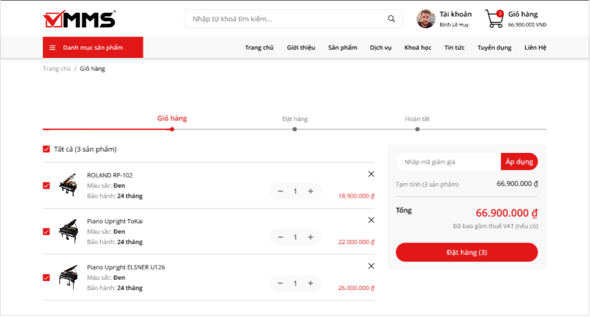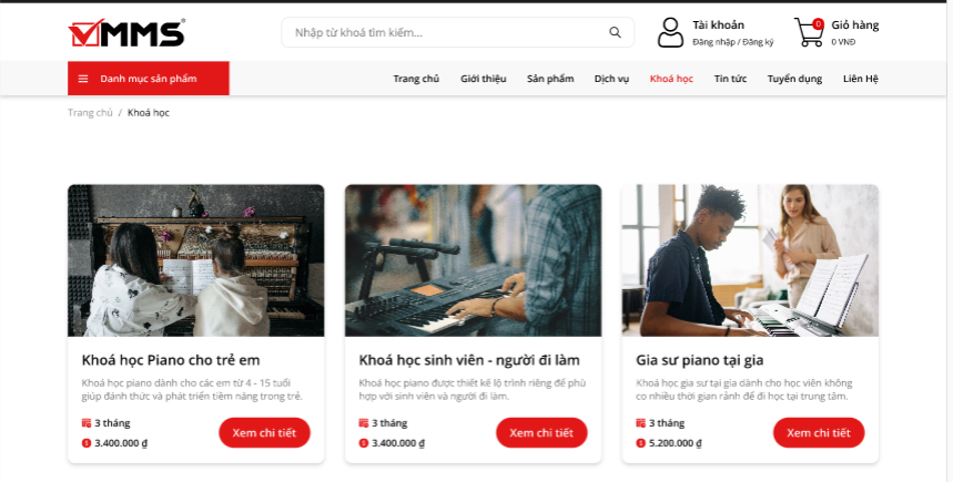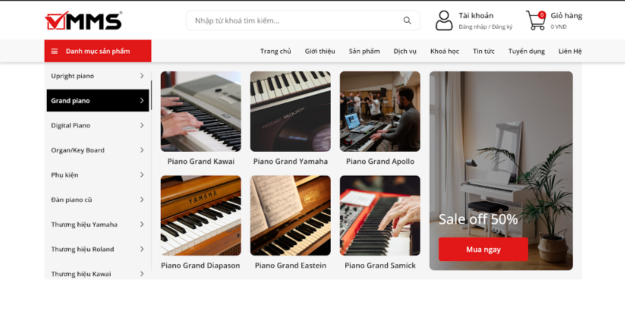 Có đầy đủ các chức năng của 1 website bán đàn như chat live, giỏ hàng, thanh toán trực tuyến….