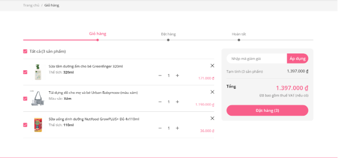 Khách hàng sau khi tham quan các sản phẩm trên trang web mẹ và bé của bạn, có thể tiến hành đặt hàng online.