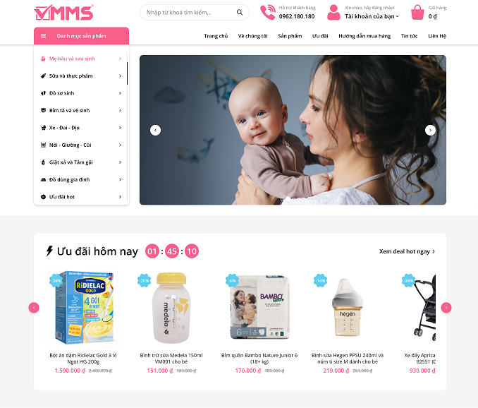 Nhờ vào khả năng sắp xếp, bài trí sản phẩm chuyên nghiệp của website bán hàng mẹ và bé, bạn có thể trình bày cùng lúc nhiều sản phẩm khác nhau.