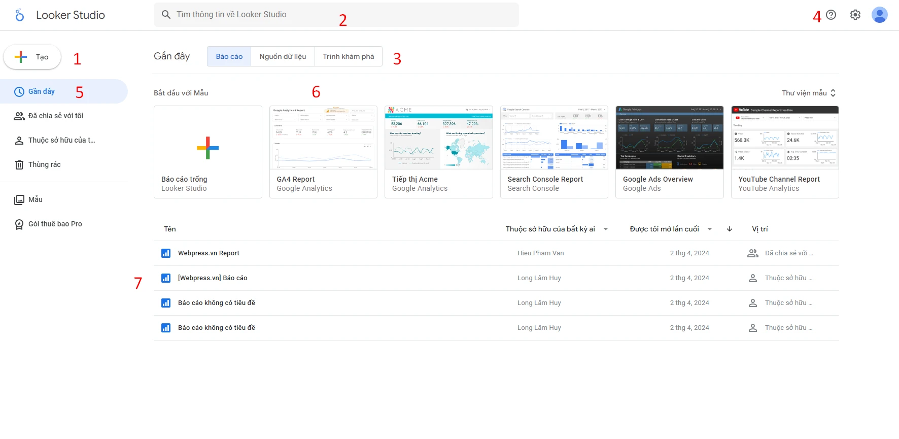 Danh sách báo cáo Looker Studio bạn đã tạo