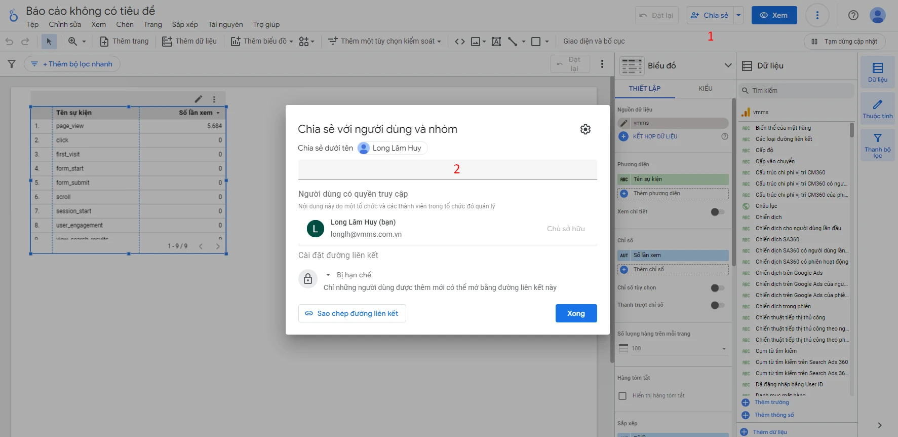 - Kết nối dữ liệu Google Looker với Google Analytics (Hướng dẫn chi tiết tại: Mục 2 -> 2.2)