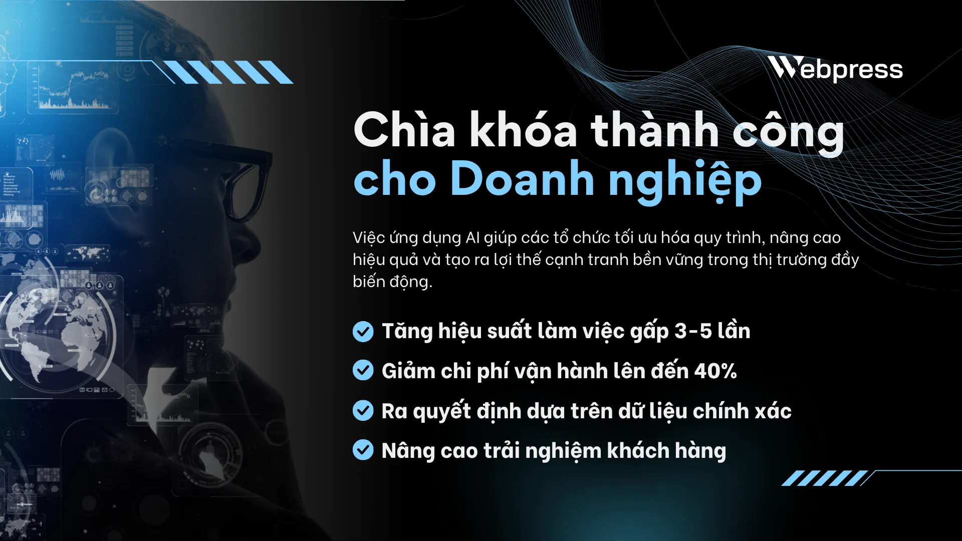 Chính vì vậy, với sứ mệnh hỗ trợ khách hàng tốt hơn nữa, Webpress không ngừng lắng nghe và cải tiến. Biết rằng AI không phải là thứ xa xỉ, mà đã trở thành công cụ cần thiết để doanh nghiệp tồn tại và phát triển.